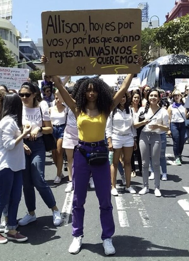 Mayela Lopez for La Nación. “Allison, today is for you and all those who haven’t returned.” The sign refers to Allison Bonilla, 18, of Paraíso, who is missing as of last week.