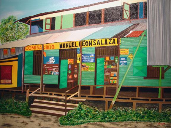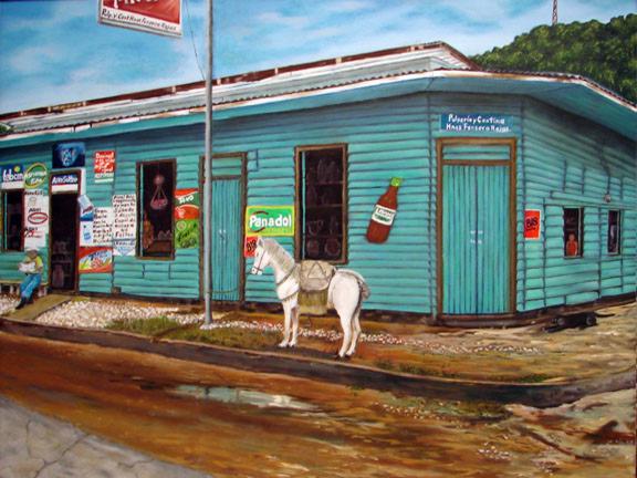 I wrote on Thursday about the beauty and, during the past few months, the renewed utility and importance of Costa Rica’s pulperías. While writing that post, I came across this lovely connection of paintings of “corner stores” past and present, and wanted to share some more of them with you. I found them on the TicoClub website, which indicates they were part of a 2009 exhibit at the National Museum called “Homage to the Costa Rican Pulpería” by students of the Home Art School of Professor Ricardo Jiménez Salazár.